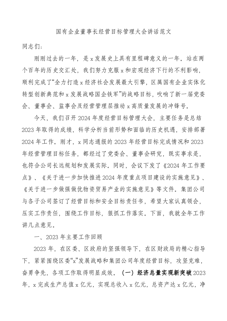 / 国有企业董事长经营目标管理大会讲话公司会议