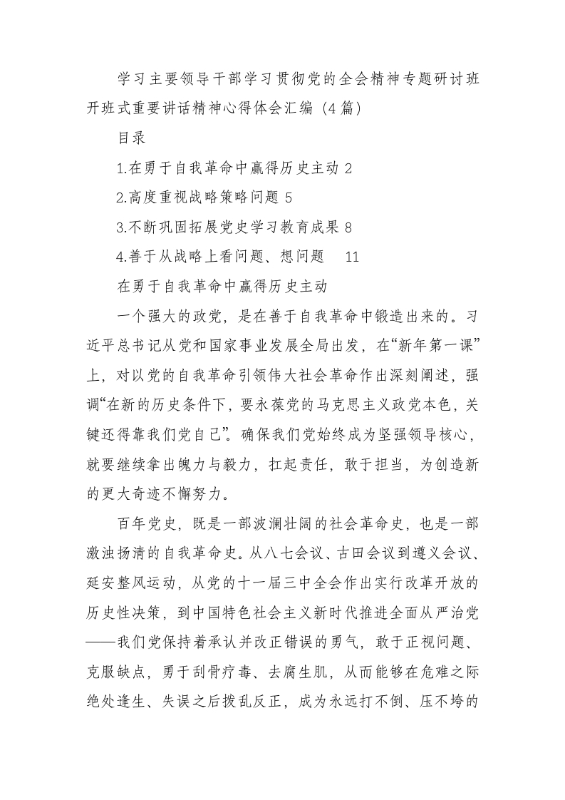 / 学习主要领导干部学习贯彻党的全会精神专题研讨班开班式重要讲话精神心得体会汇编(4篇)