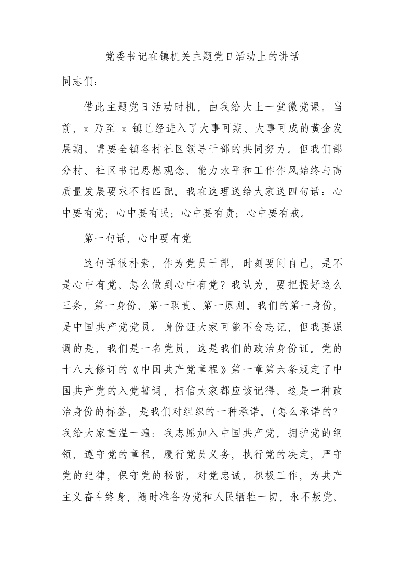 党委书记在乡镇主题党日活动上的讲话(微党课)