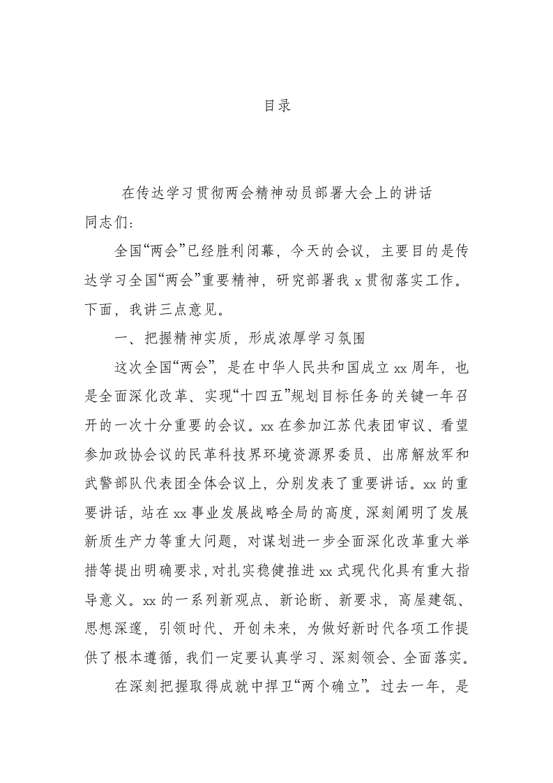 / 在传达学习贯彻两会精神动员部署大会上的讲话