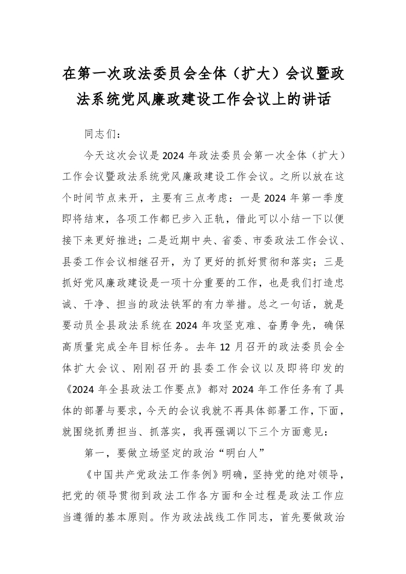 / 在第一次政法委员会全体(扩大)会议暨政法系统党风廉政建设工作会议上的讲话