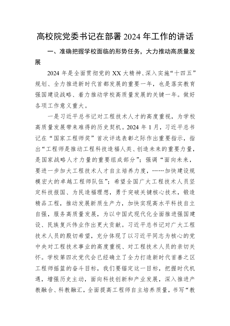/ 高校院党委书记在部署2024年工作的讲话