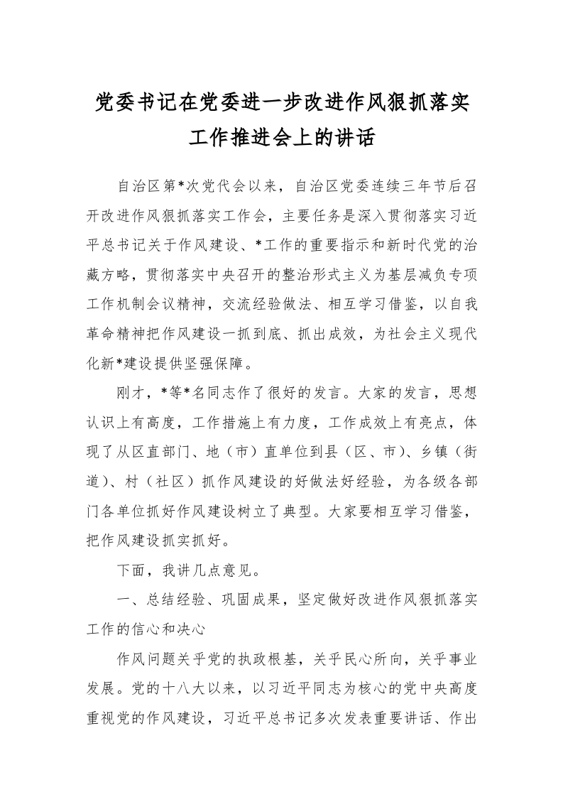 / 党委书记在党委进一步改进作风狠抓落实工作推进会上的讲话