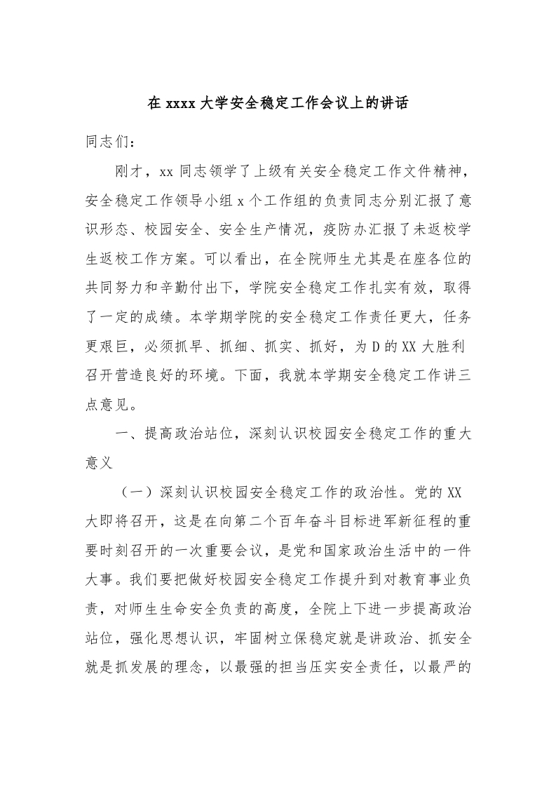 / 在xxxx大学安全稳定工作会议上的讲话