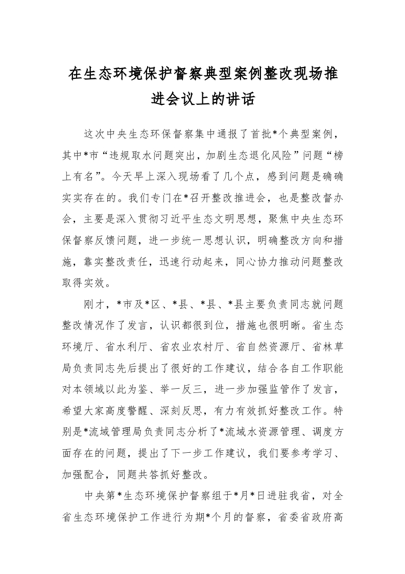 / 在生态环境保护督察典型案例整改现场推进会议上的讲话