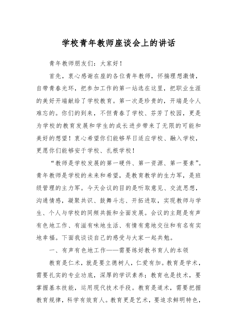 / 学校青年教师座谈会上的讲话