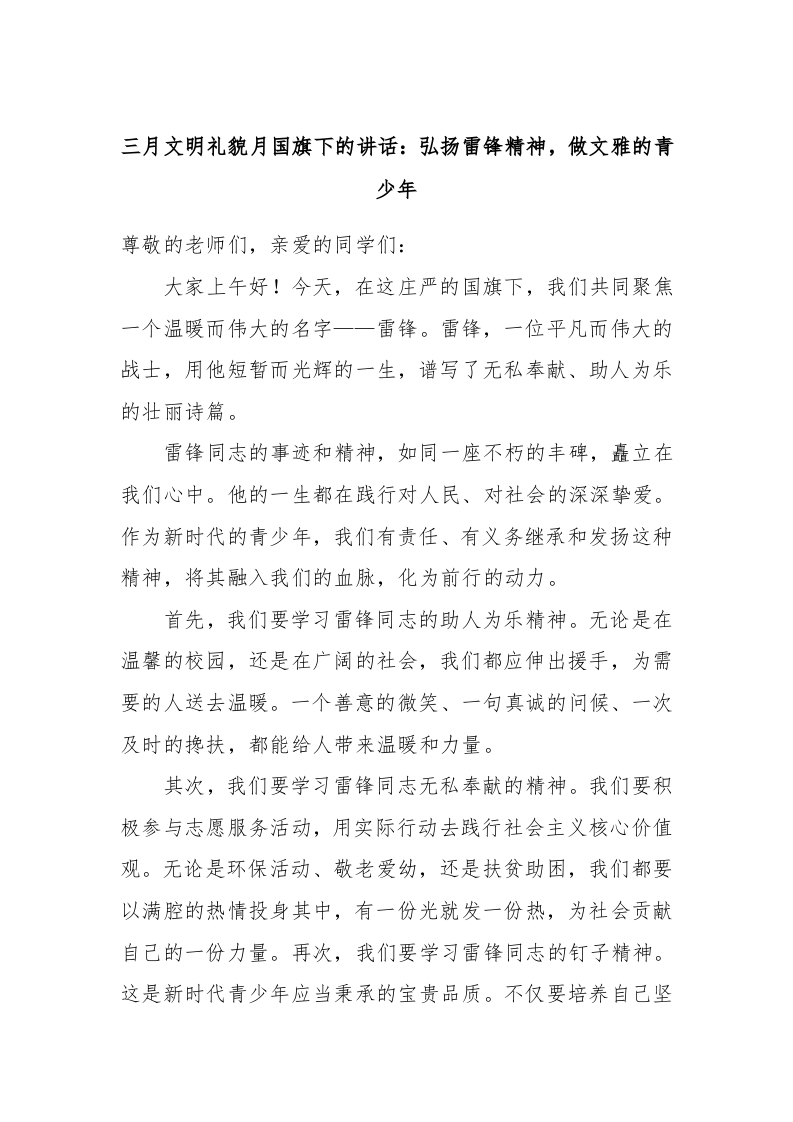 / 三月文明礼貌月国旗下的讲话:弘扬雷锋精神,做文雅的青少年