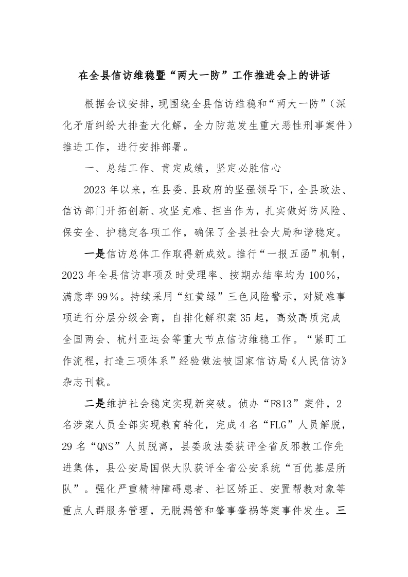 / 在全县信访维稳暨“两大一防”工作推进会上的讲话