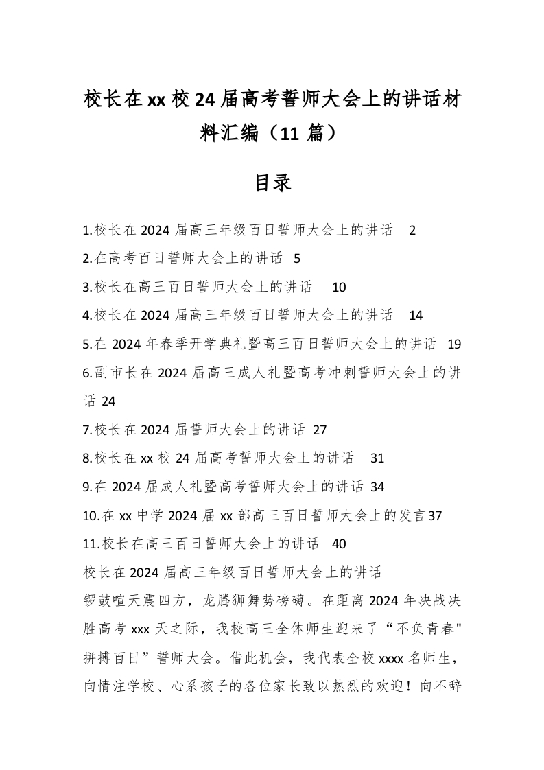 / (11篇)校长在xx校24届高考誓师大会上的讲话材料汇编