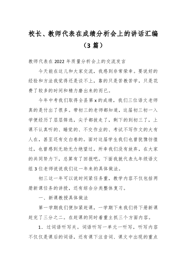 / (3篇)校长、教师代表在成绩分析会上的讲话汇编
