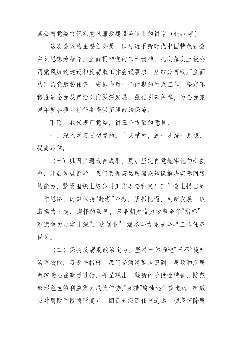 / 国企党委书记在党风廉政建设会议上的讲话