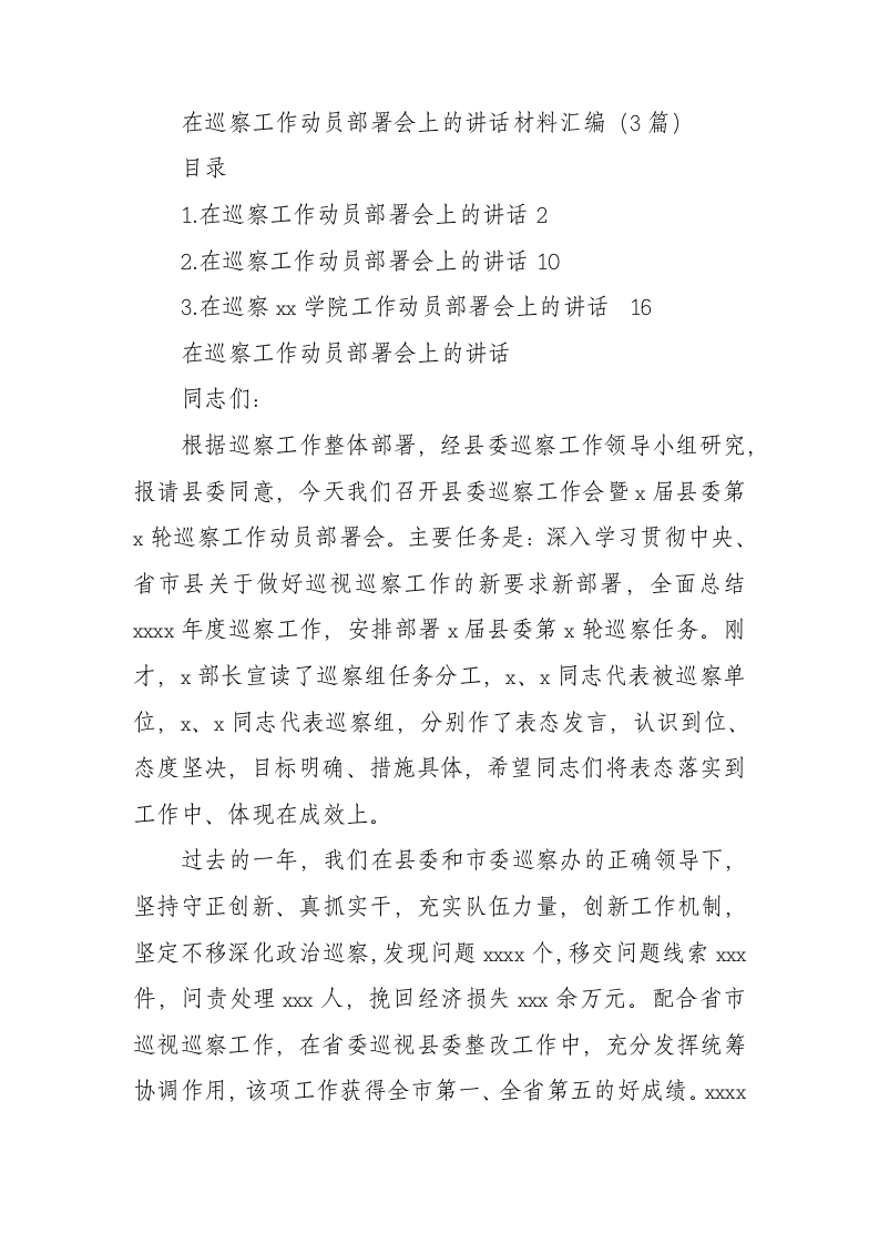 / 在巡察工作动员部署会上的讲话材料汇编(3篇)