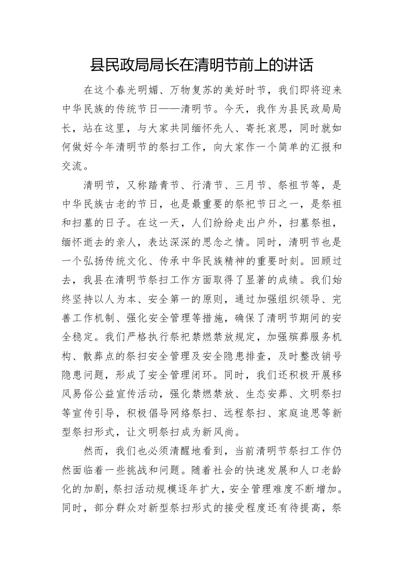/ 县民政局局长在清明节前上的讲话