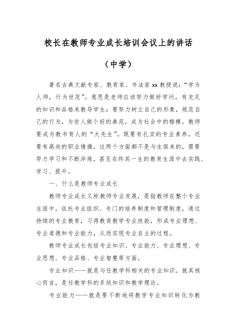 / 校长在教师专业成长培训会议上的讲话(中学)