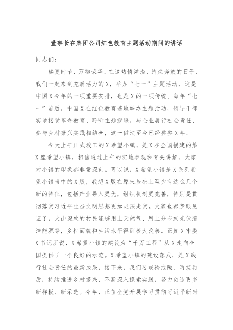 / 董事长在集团公司红色教育主题活动期间的讲话