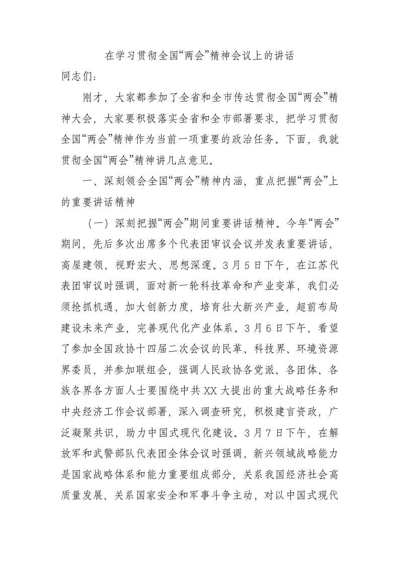 2024年在学习贯彻全国“两会”精神会议上的讲话