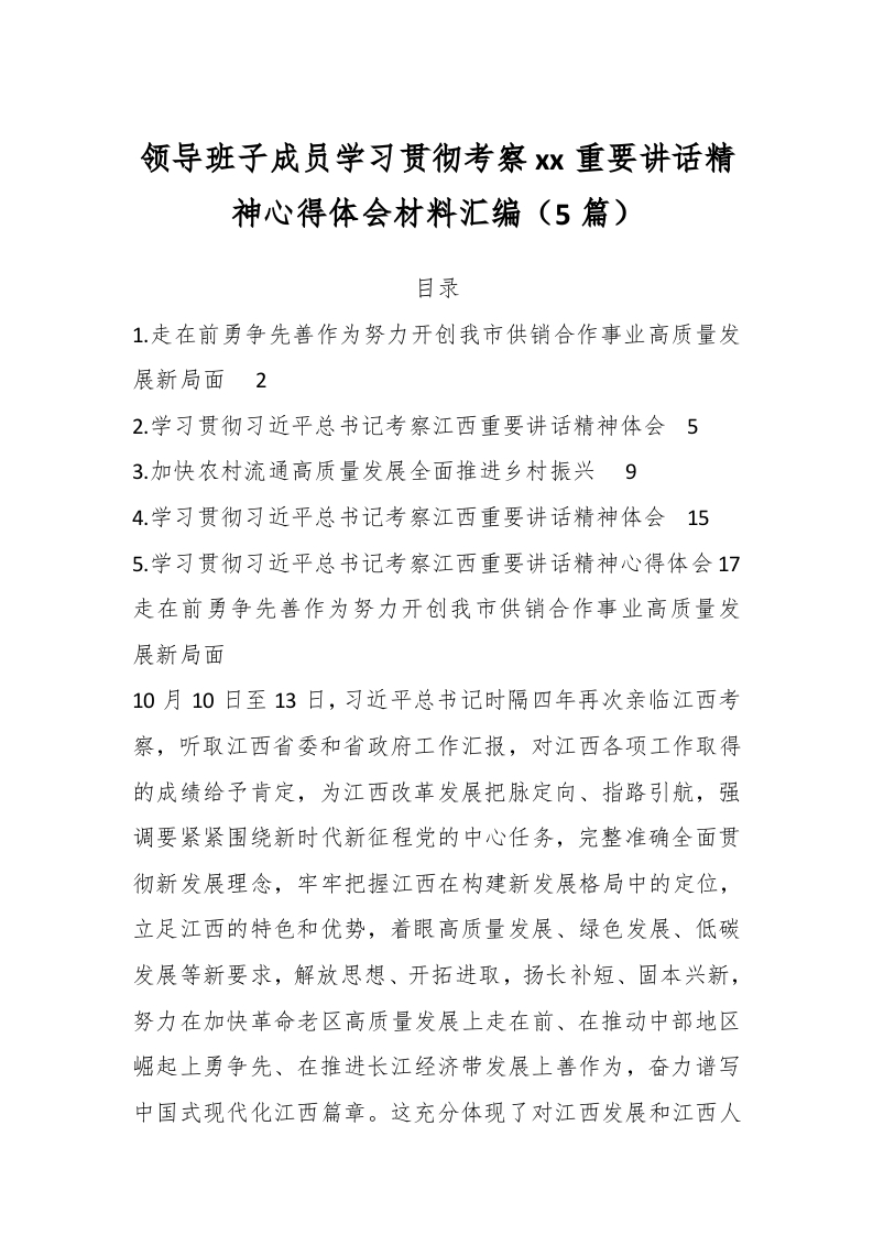 (5篇)领导班子成员学习贯彻考察xx重要讲话精神心得体会材料汇编