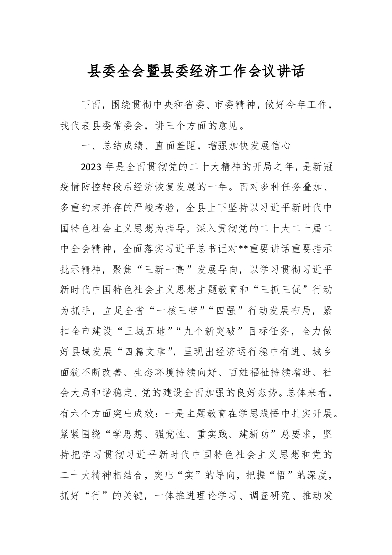 / 县委全会暨县委经济工作会议讲话