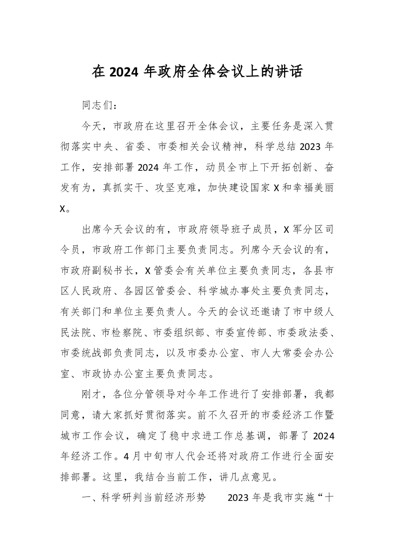 在2024年政府全体会议上的讲话