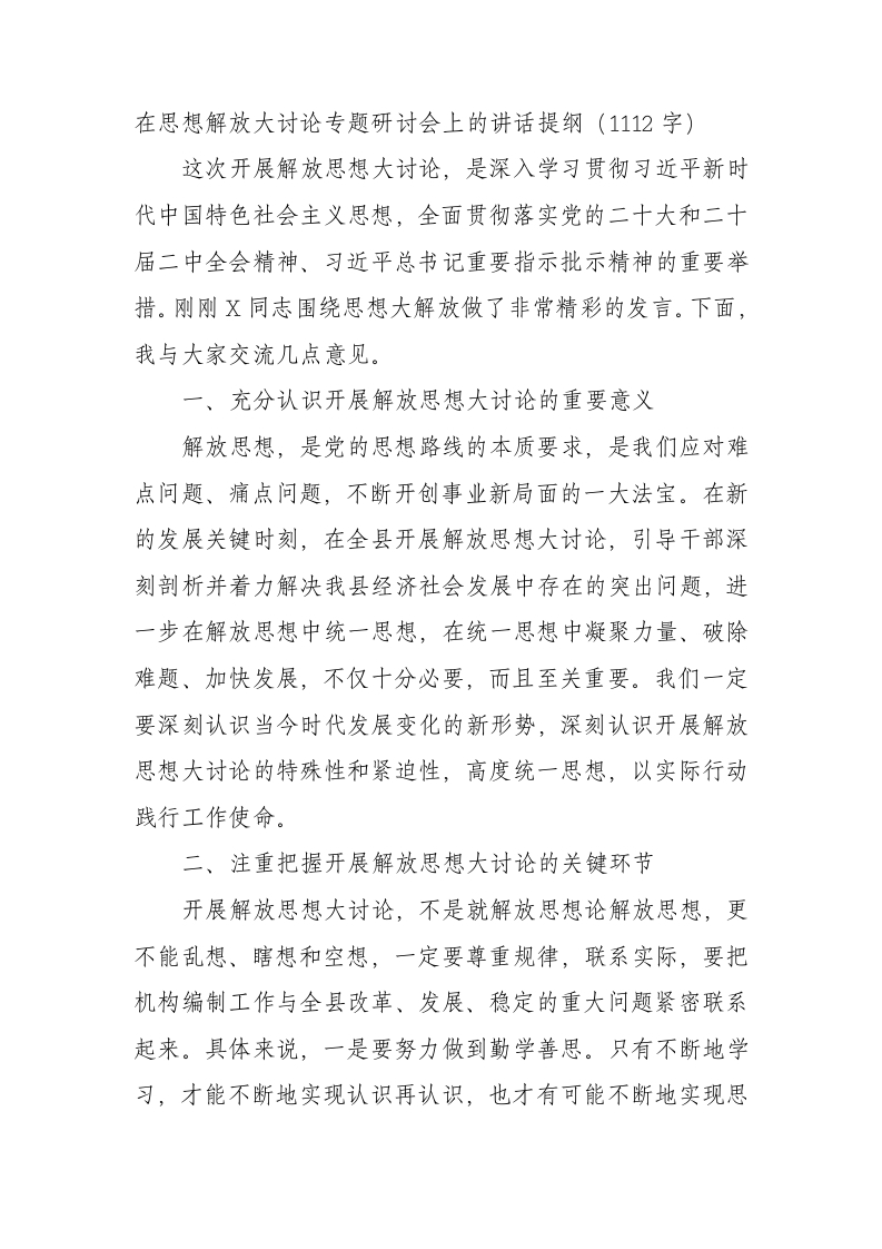 / 解放思想大讨论专题研讨会上的讲话提纲