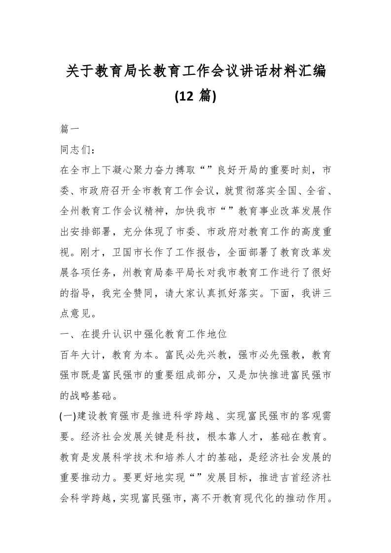 / (12篇)关于教育局长教育工作会议讲话材料汇编