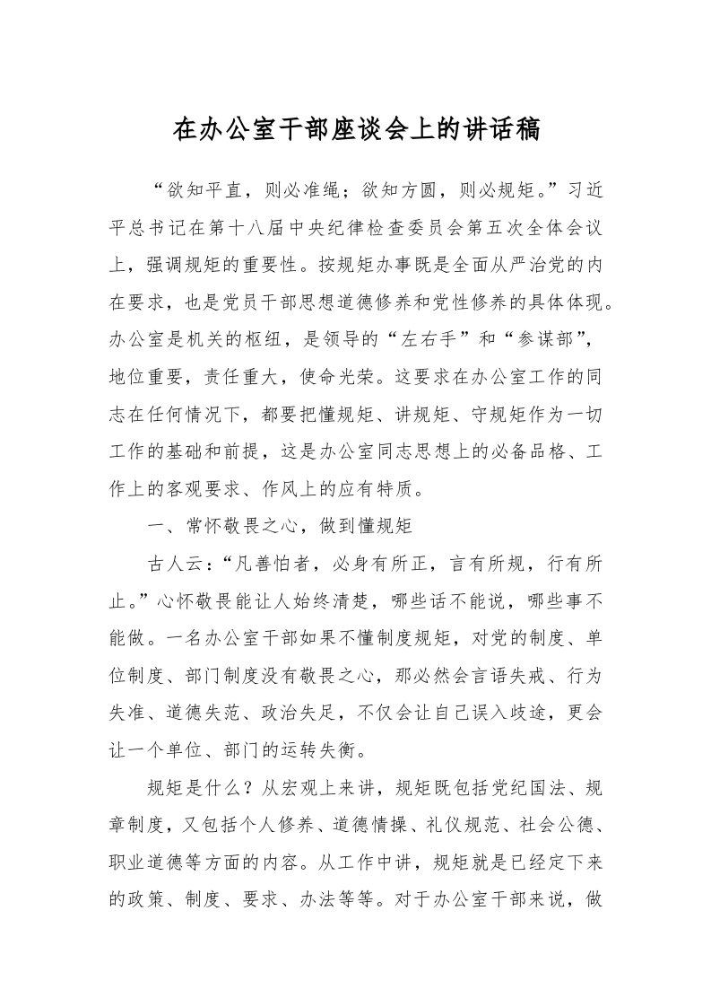 / 在办公室干部座谈会上的讲话稿