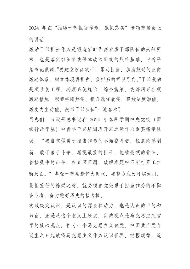 / 2024年在“推动干部担当作为、狠抓落实”专项部署会上的讲话