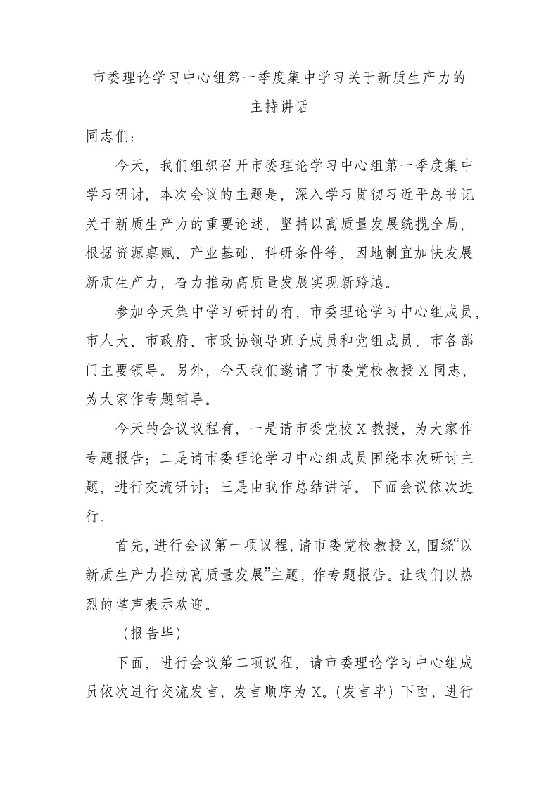 中心组第一季度集中学习关于新质生产力的主持讲话