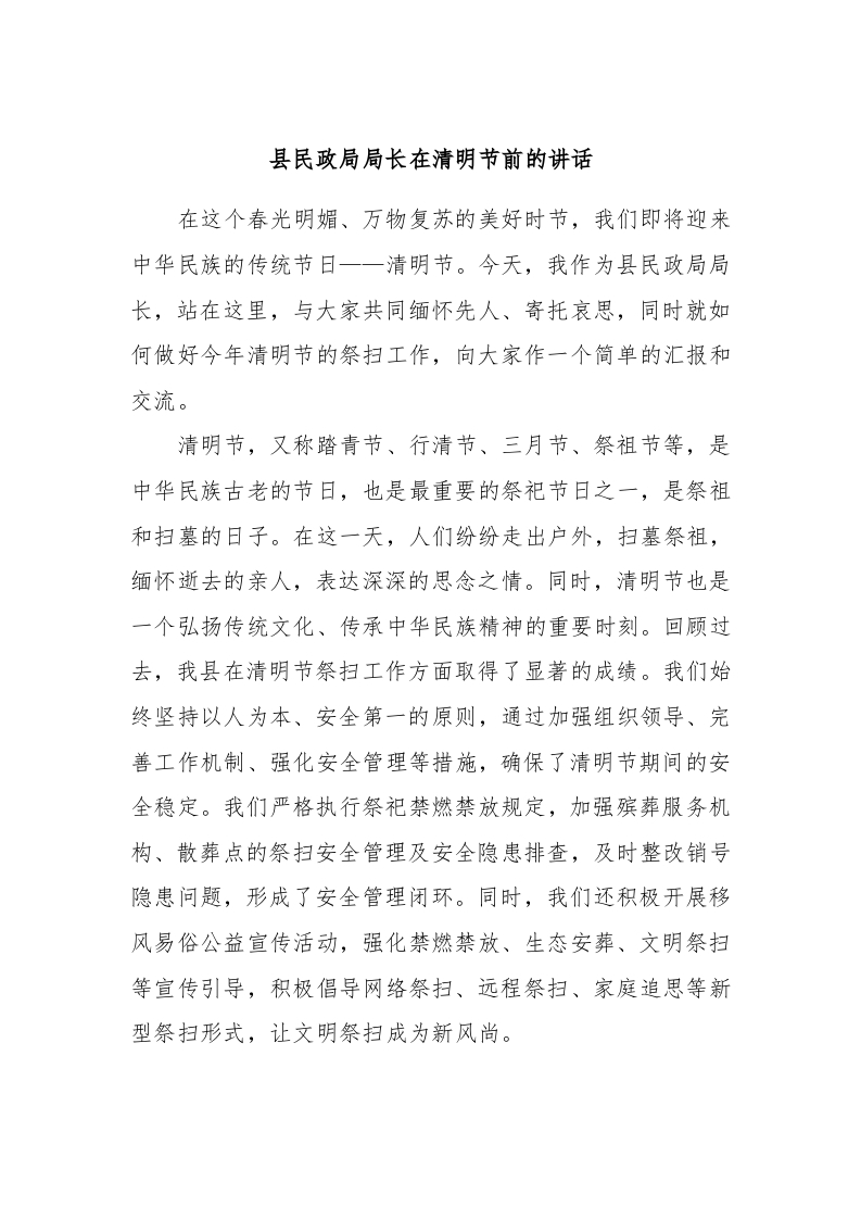 / 县民政局局长在清明节前的讲话