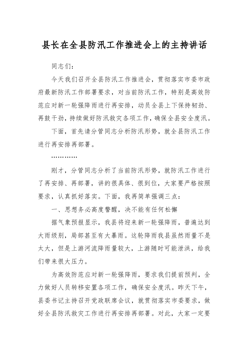 县长在全县抓招商、上项目、促发展大会上的主持讲话