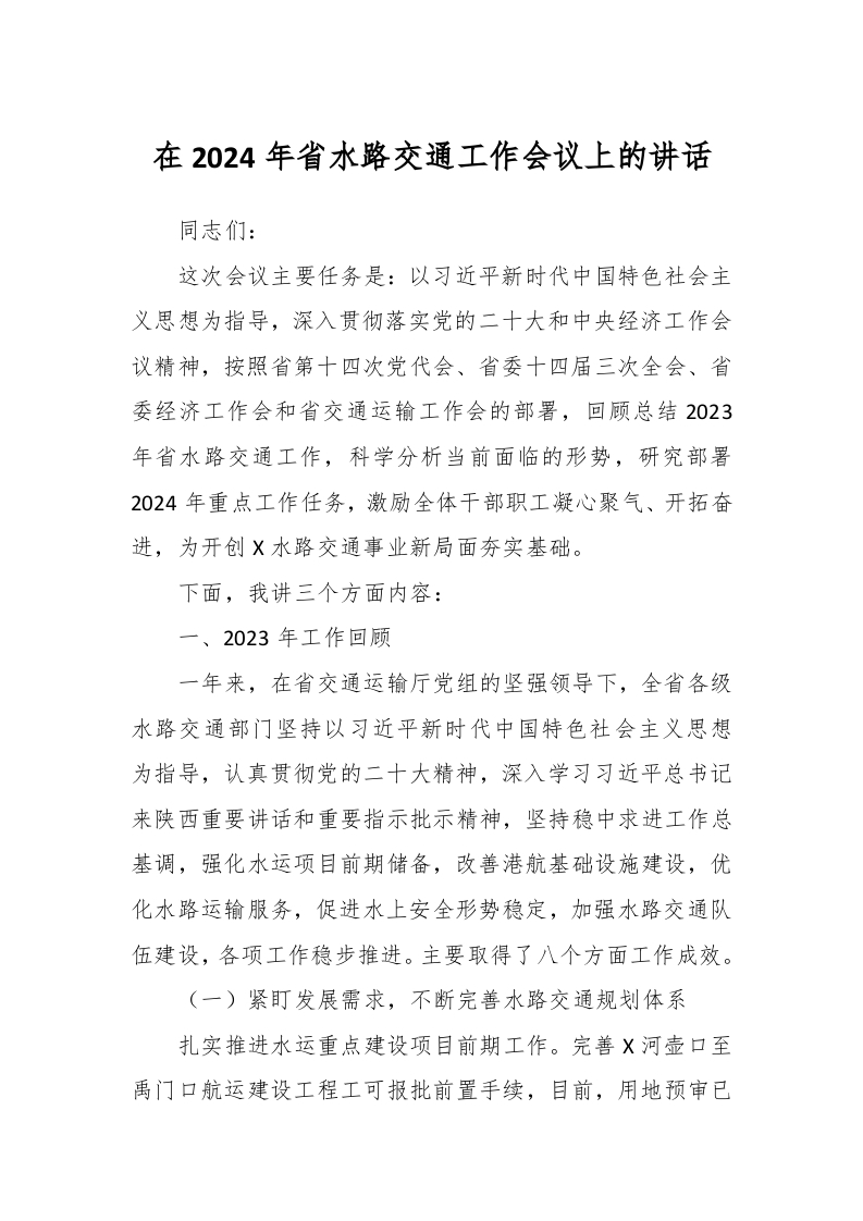 / 在2024年省水路交通工作会议上的讲话