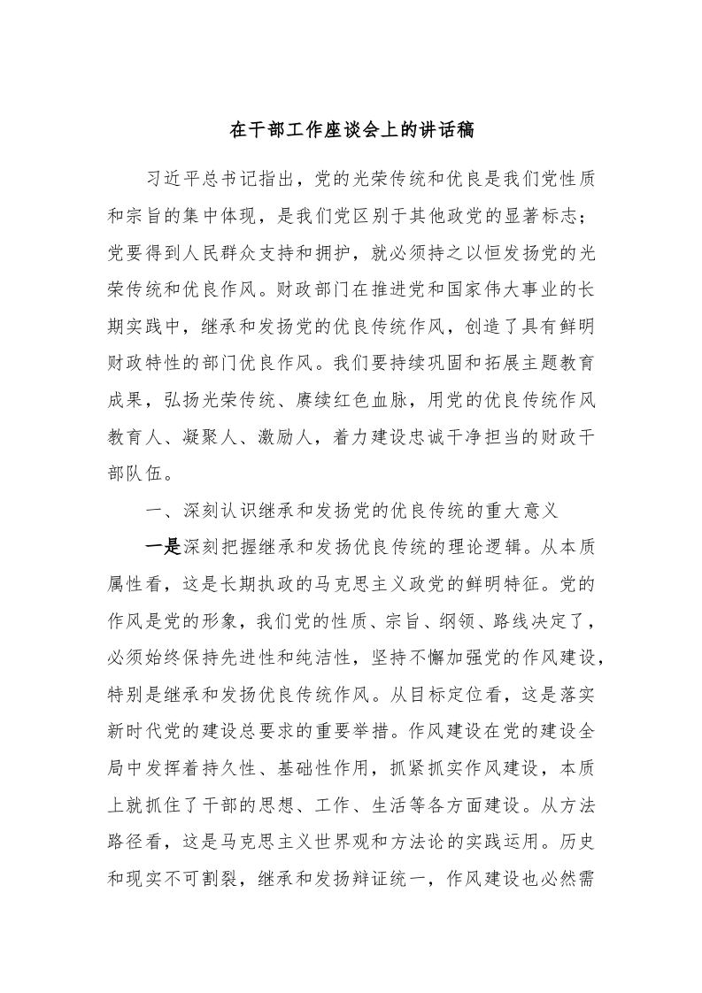 / 在干部工作座谈会上的讲话稿