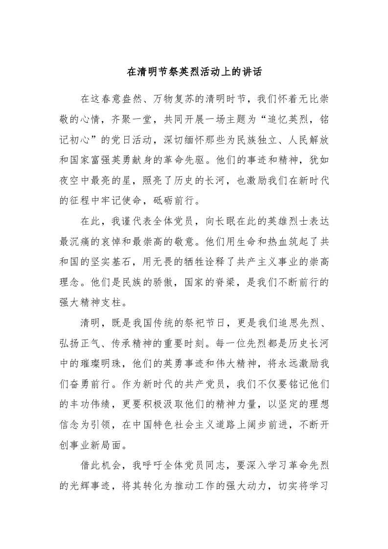 / 在清明节祭英烈活动上的讲话