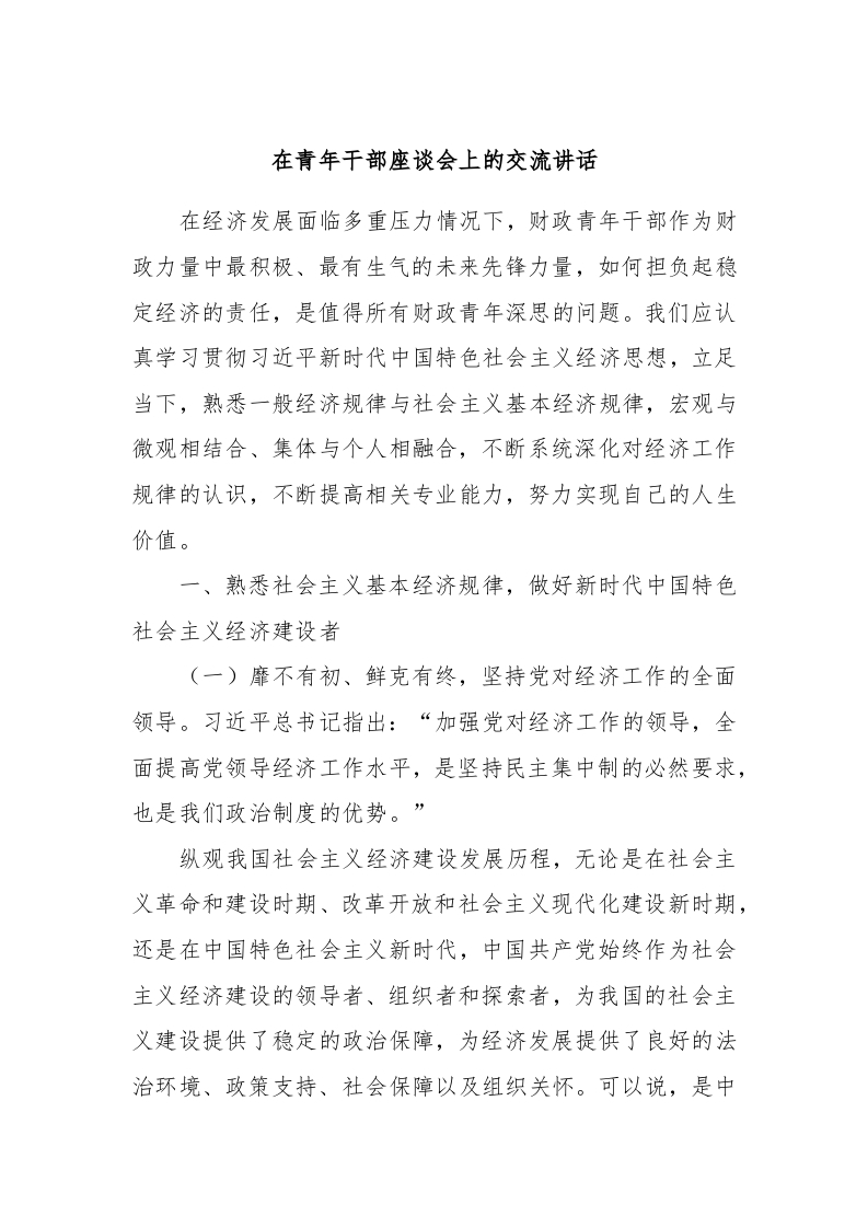 / 在青年干部座谈会上的交流讲话