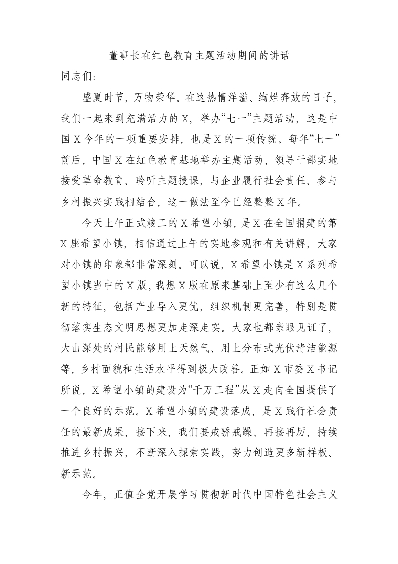董事长在红色教育主题活动期间的讲话(集团公司)
