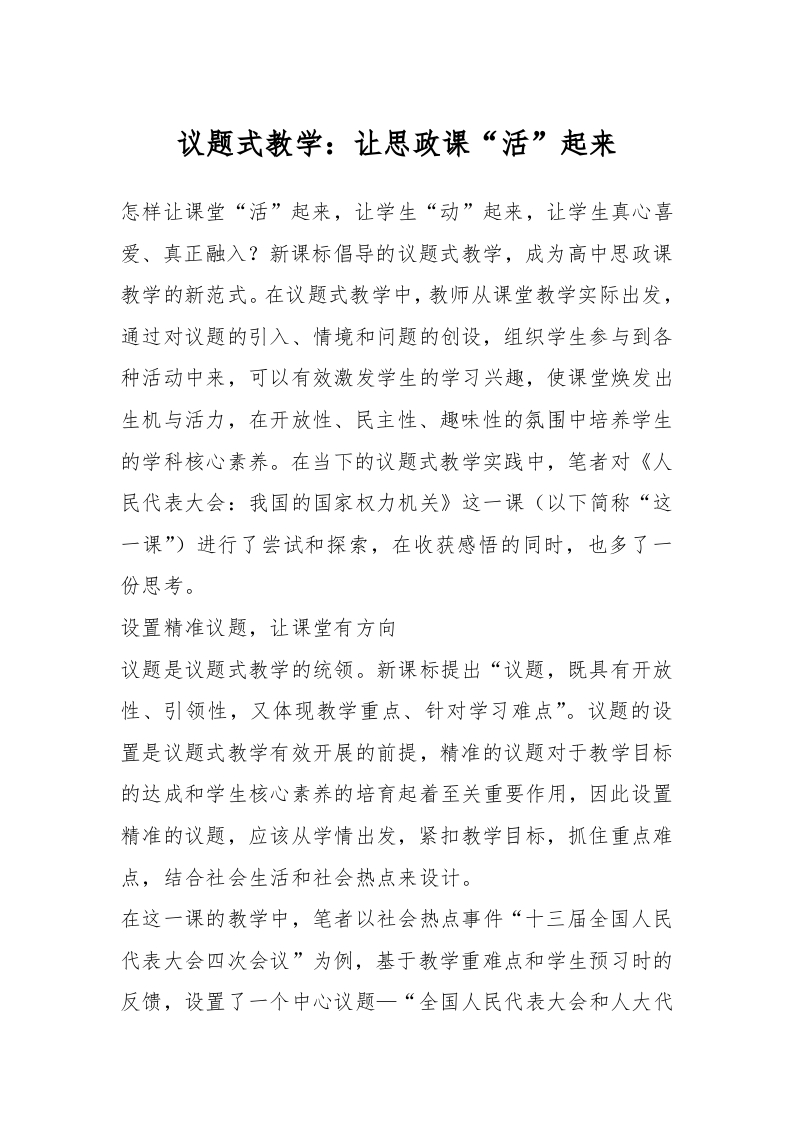 / 议题式教学:让思政课“活”起来