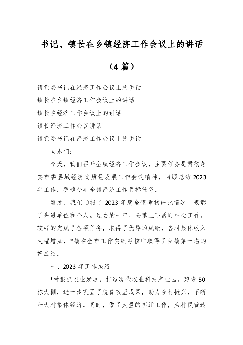 / (4篇)书记、镇长在乡镇经济工作会议上的讲话