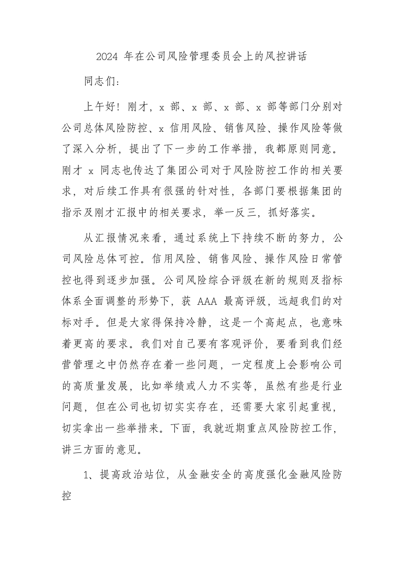 / 2024年国企风险管理委员会上的风控讲话