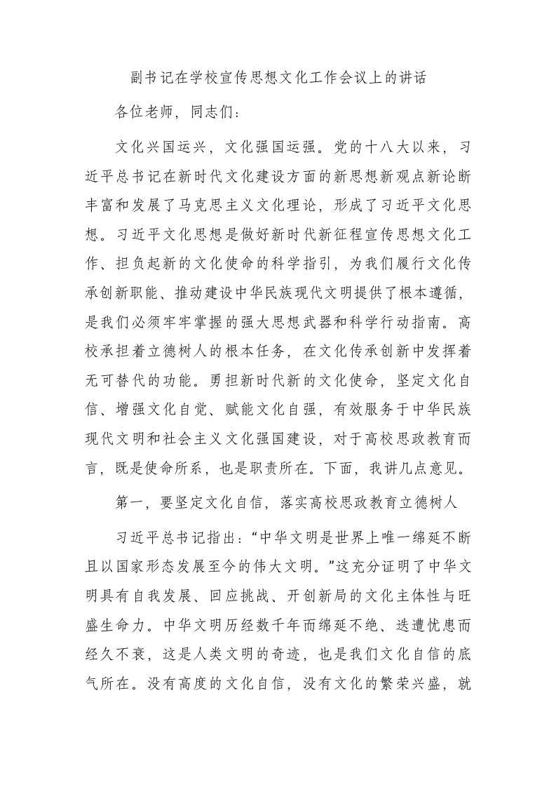 / 副书记在学校宣传思想文化工作会议上的讲话