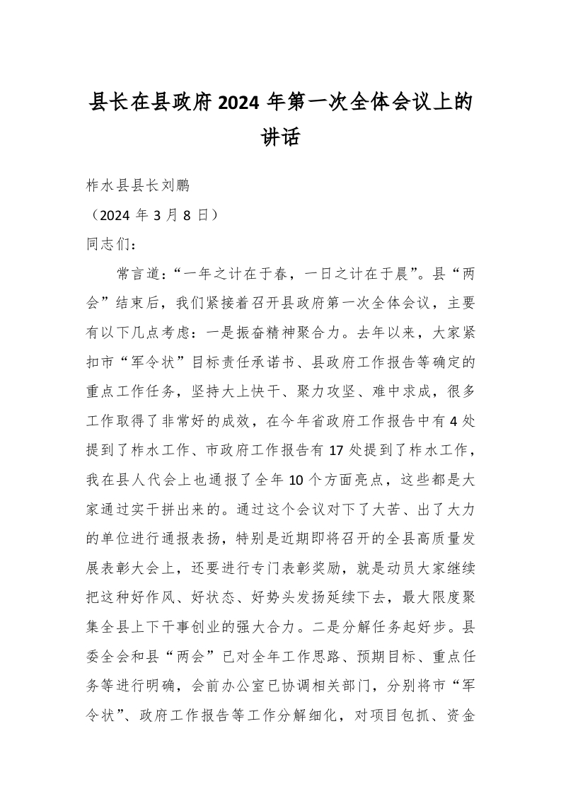 / 县长在县政府2024年第一次全体会议上的讲话