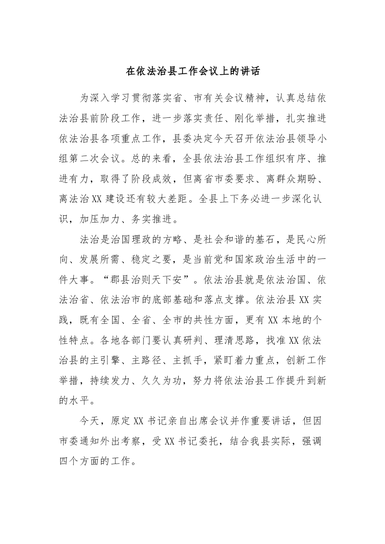 / 在依法治县工作会议上的讲话
