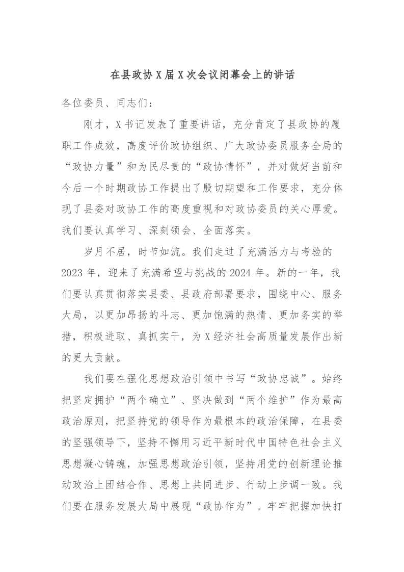 / 在县政协X届X次会议闭幕会上的讲话 (2)