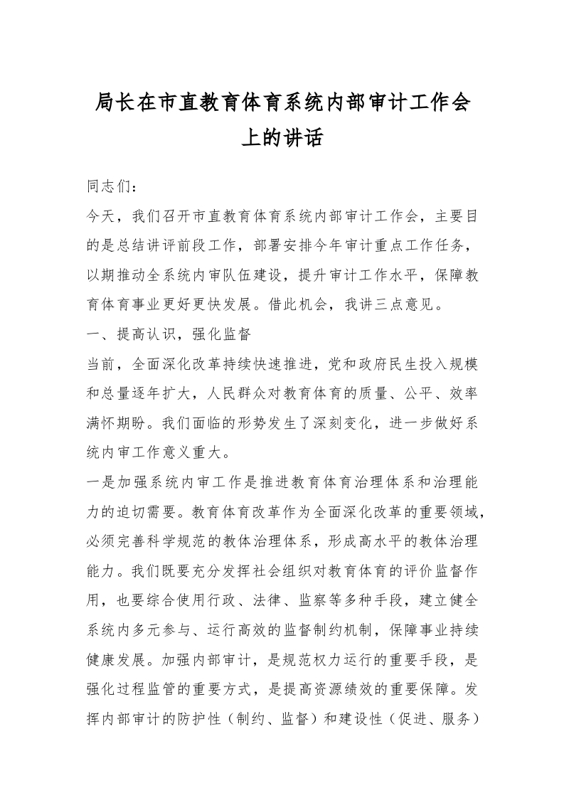 / 局长在市直教育体育系统内部审计工作会上的讲话