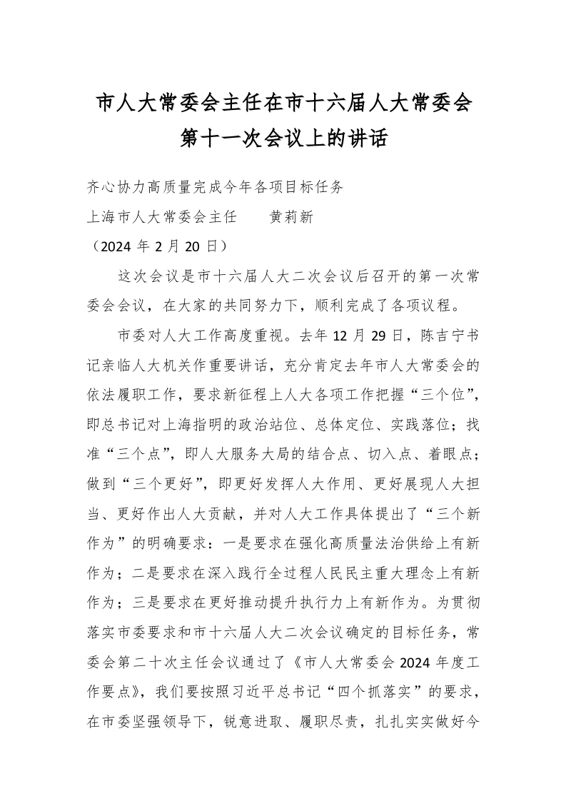 / 市人大常委会主任在市十六届人大常委会第十一次会议上的讲话