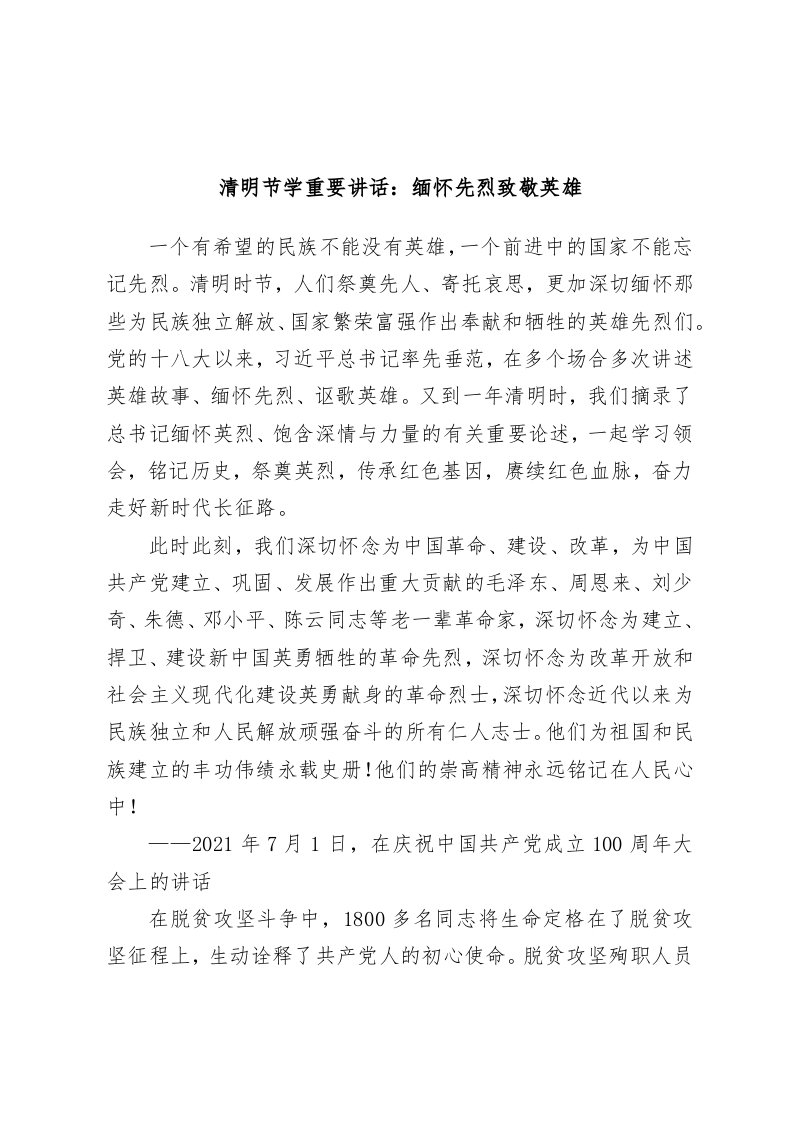 清明节学重要讲话:缅怀先烈致敬英雄