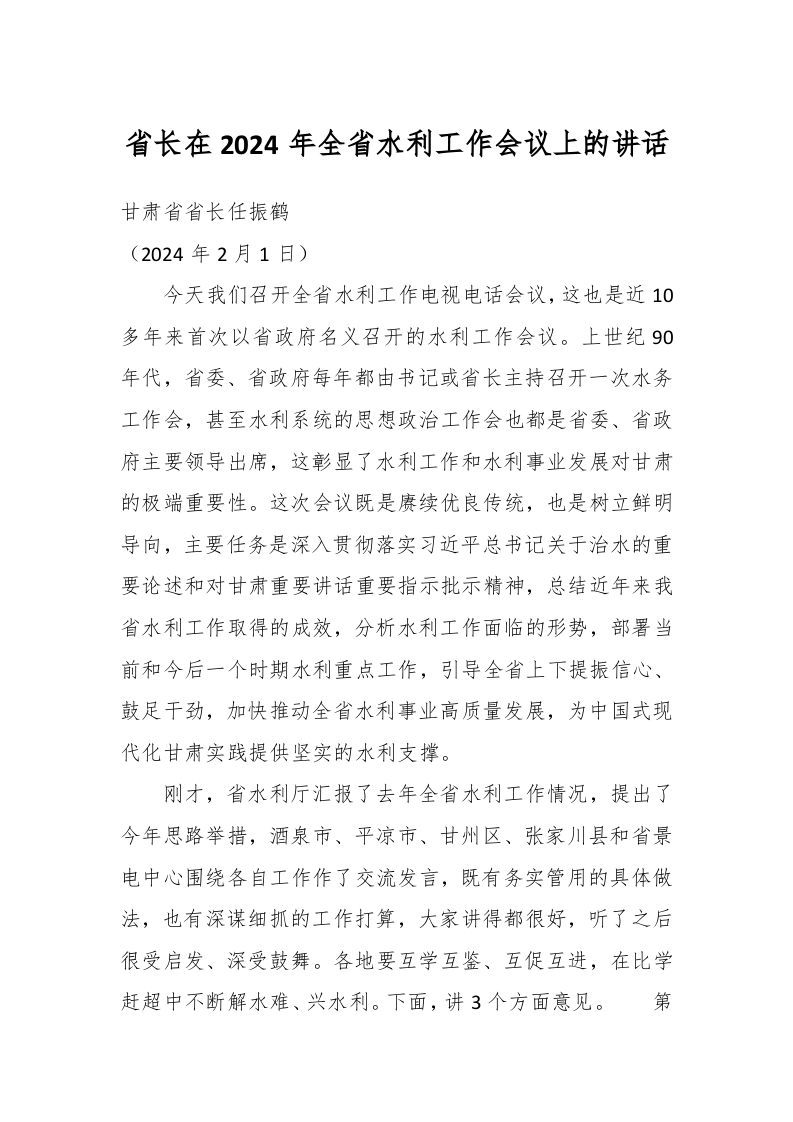 / 省长在2024年全省水利工作会议上的讲话