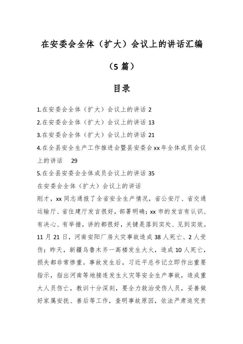 / (5篇)在安委会全体(扩大)会议上的讲话汇编