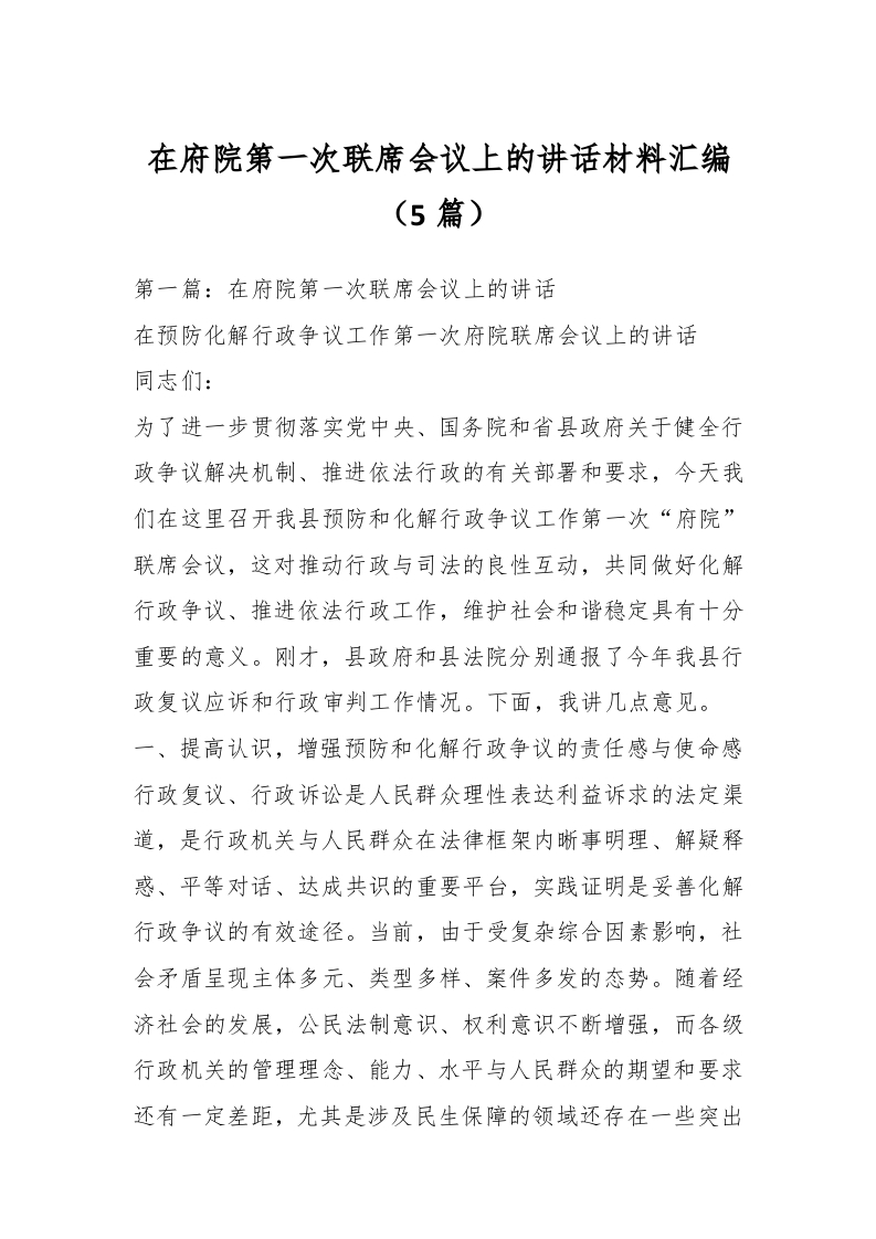 (5篇)在府院第一次联席会议上的讲话材料汇编