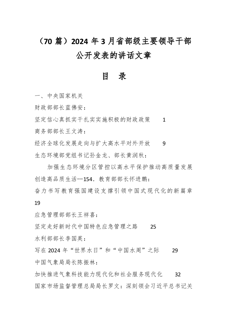 / (70篇)2024年3月省部级主要领导干部公开发表的讲话文章