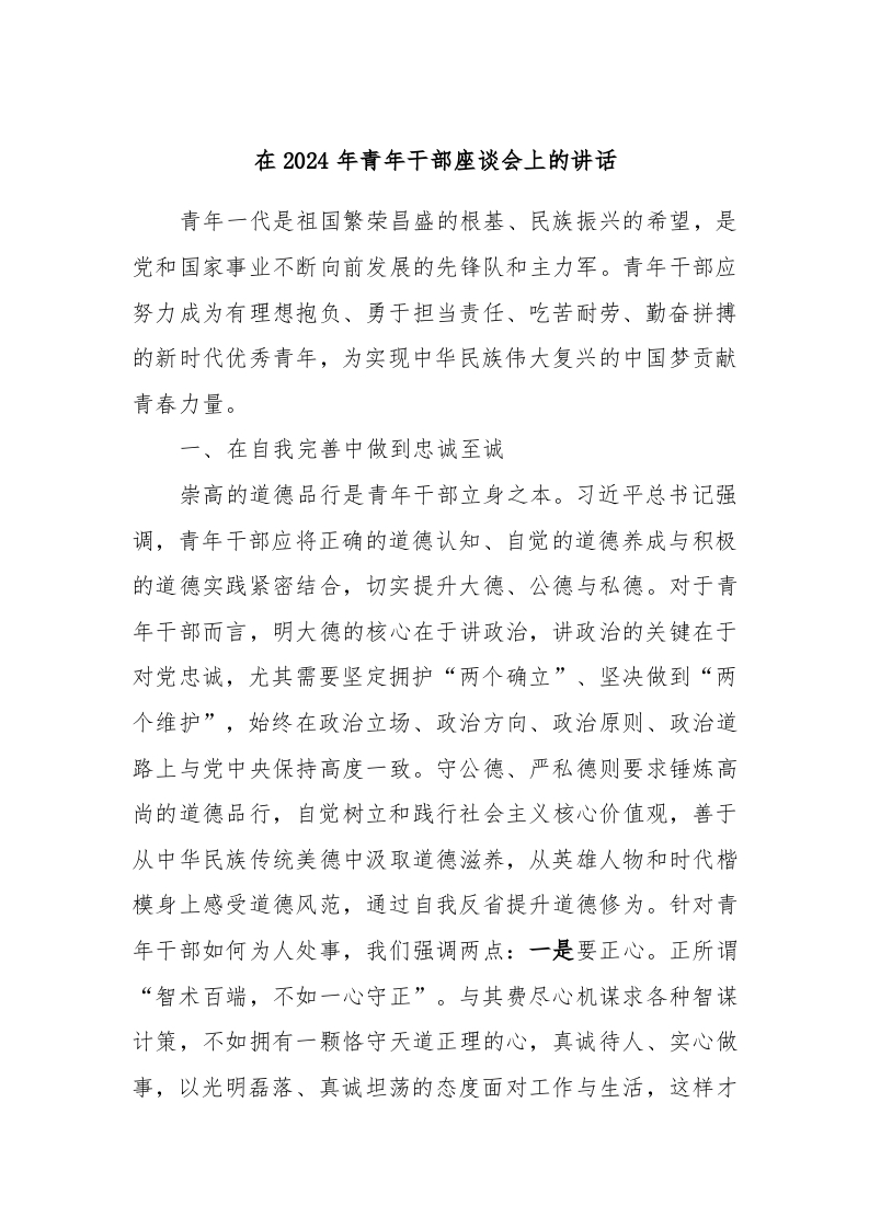 在2024年青年干部座谈会上的讲话